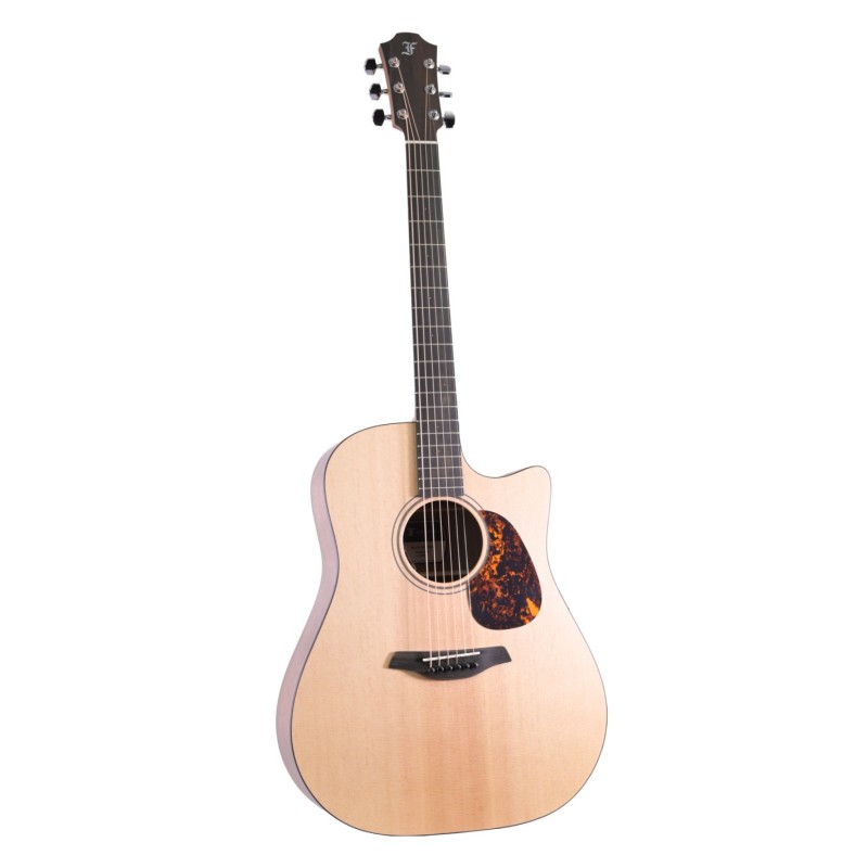 La table d'harmonie du modèle Furch Blue SA est en épicéa de Sitka de haute qualité. Le dos et les éclisses sont en bois de zèbre de haute qualité. La finition Open-Pore laisse les pores du bois exposés, ce qui préserve les propriétés acoustiques naturelles des bois. Cette combinaison de bois massifs de haute qualite avec une finition exclusive produit un son musical magnifique dans toute la plage sonore, avec des tons plus sombres.